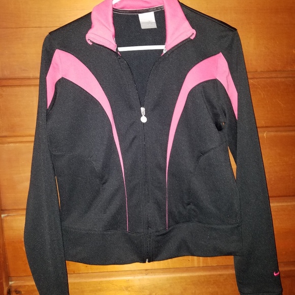 Black & Pink Nike track jacket is perfect for working out or paired with leggings! This has been used very gently, only wore a few times.