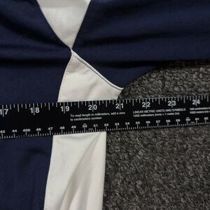 Condition: Great condition, athletic Dri-Fit material, navy and white panel design, no major flaws.