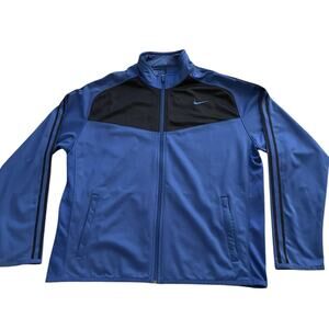 Nike Track Jacket Zip Up Black/Royal Blue With Stripes On Arms Size XL