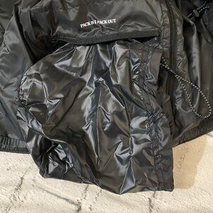 The vest packs down into its own zippered chest pocket for ease of storage.