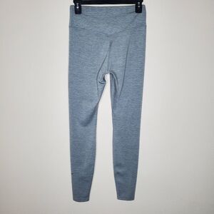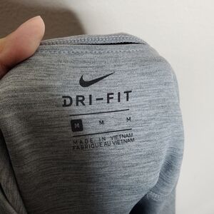 Excellent condition. Only worn once. Gray & Black. High rise. Nike swoosh graphic logo at ankle. One pocket at front of waistband. One pocket at back of waistband. Full length.