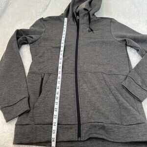 The Nike Training Therma Fit Full Zip Up Fitness Hoodie Jacket in size small is a versatile and stylish activewear piece for men. Made from fleece fabric, this hoodie features a high neckline with a full zip closure, making it suitable for all seasons. It also comes with a hood, pockets, and long sleeves, perfect for various activities like basketball. The solid gray color and Nike branding add a classic and sporty touch to the design. Machine washable and designed for regular fit, this hoodie is a must-have for any active man's wardrobe.