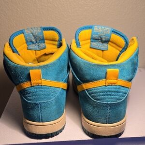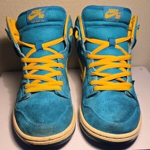 Vibrant Nike Tropical Teal 2013 high-tops with teal suede and yellow accents. Eye-catching design for everyday style. In good condition for being over 10 years old .