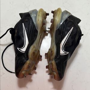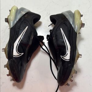 Sleek Black Nike Trout Baseball metal cleats with a white swoosh. EUC.