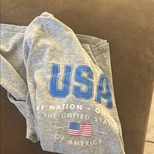 Nike USA gray t-shirt with blue lettering and American flag design. Comfortable and stylish.