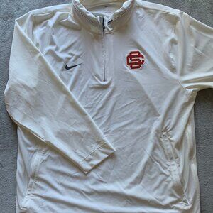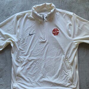 Nike USC Trojans Baseball Player-Issued Lightweight 1/4-Zip Jacket. XXL. Zip/tuck hood. Side/vented zippers. In excellent condition. No stains, rips or holes. Tag reads Men's XXL but, please see measurements and review all pics below before purchase.