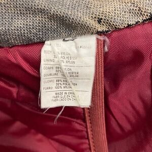 Preowned in fair overall condition. Flaws include pealing coating on the inside lining, cracks to one of the shoulder moulded components, small spots of wear on the exterior shown in photos. Strap ties are also very worn at the ends. All zippers work and shoulder straps are adjustable and work.