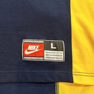 Michigan Wolverines Nike Vintage Basketball Warm Up Jersey. Classic blue & maize with applique M on chest. Fan Five. Short sleeves.Size Large