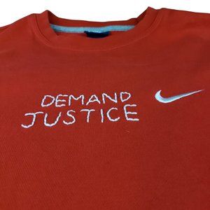 A creative person has stitched Demand Justice on this super soft everyday nike sweatshirt and breathed new life into