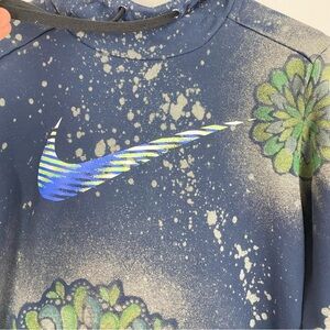 Nike Upcycled Sweatshirt Hoodie Pullover Mens Small Unisex Blue Logo Stencil