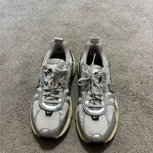 Nike athletic shoes in cream and black. Sleek design with durable construction.