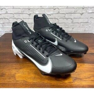 The Nike Vapor Edge Pro 360 2 Men's Football Cleats DA5456-001 in Black and White are designed for performance on the football field. These cleats feature a slip-on lace-up closure for a secure fit and are made with synthetic materials for durability and comfort. With a low-top shoe shaft style and standard shoe width, these cleats are lightweight and breathable, making them ideal for summer, fall, and spring seasons. The solid black color with Nike branding adds style to these athletic shoes, perfect for football players looking for high-quality footwear. NO BOX