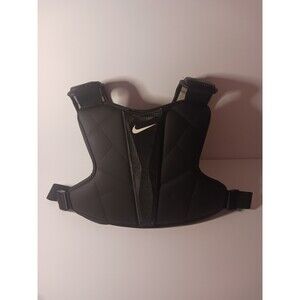 The Nike Vapor Select Men's Lacrosse Black Shoulder Pad Liner SLVS-03 is a high-quality protective gear designed for all lacrosse players. Made with a hard shell, polyethylene foam, and foam material, this pad offers lightweight and breathable protection for the shoulders. It features adjustable straps and a padded design for maximum comfort and support during games. The sleek black color and durable construction make it a must-have for any lacrosse player looking to enhance their performance on the field. Made by the trusted brand Nike, this shoulder pad liner is a top choice for men's lacrosse. The size tag is missing, but it seems to be a small or medium men's lacrosse vest.