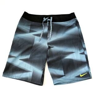 Nike Vapor Stretch Board Shorts Blue Swim Trunks 11" Pattern Geometric Size 32