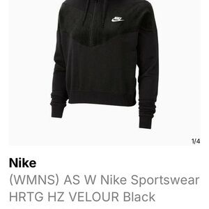 Nike Velour Black Pullover Hoodie with Half-Zip and Swoosh Logo