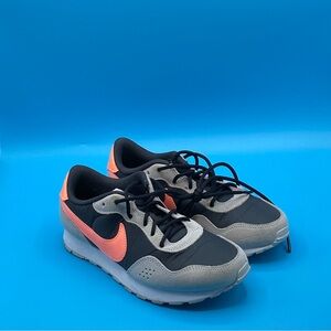 Stylish Nike sneakers for kids. Black design with bold pink swoosh. Perfect for everyday wear.