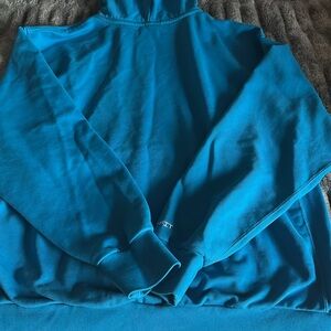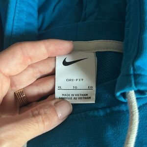 Vibrant blue Nike hoodie with a drawstring hood. Features a small logo on the chest.