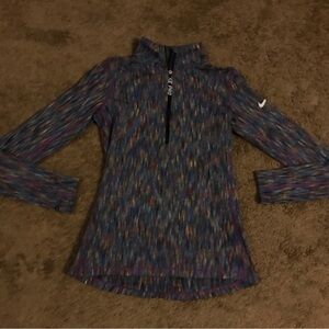 Eye-catching Nike pullover with a quarter-zip. Features a vibrant pattern. Ideal for everyday wear. Measurements are pit to pit is 17 inches