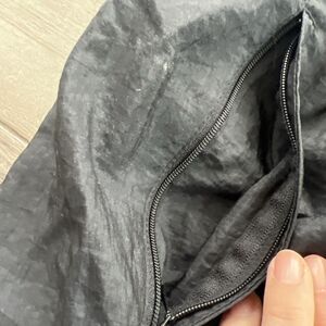 These Nike Vintage 90s Track Pants are a stylish and functional choice for women in size Medium. They feature a solid black color with ankle zips, making them easy to pull on. The nylon material is wind-resistant and machine washable, suitable for both casual wear and exercise activities like running or track and field. The elastic waist with drawcord provides a comfortable fit, and the pants also include zip pockets for added convenience. Perfect for a retro athletic look with a modern touch.