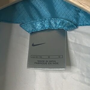 Nike | Vintage Blue White Cinched Adjustable Waist Oversized Classic Swoosh Windbreaker Jacket in size Large 12/14