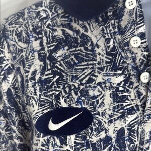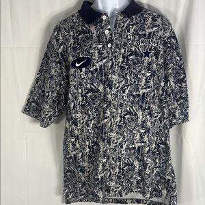 The Nike Polo Shirt showcases a captivating black and white abstract design, blending modern artistry with classic polo style. Its monochromatic palette ensures versatility, making it a standout addition to any wardrobe. Crafted with attention to detail, this shirt embodies both comfort and sophistication. PreOwned/Used condition.
