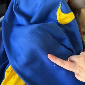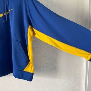Nike vintage hoodie sweatshirt pullover men's xxl thermafit therma fit activewear streetwear athleisure sportswear retro y2k 90s 00s sporty blue yellow fleece lined warm cozy comfy logo Rams