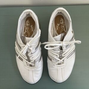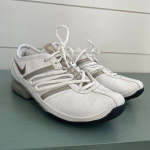 The Nike Vintage White Leather Archtech Sneakers in women's size 37.5 (US size 6) are a stylish and athletic pair of shoes from 2008. Featuring a classic sneaker design with a white leather upper, these shoes are both fashionable and functional. With a vintage feel and timeless appeal, these Nike sneakers are a perfect addition to any woman's shoe collection.