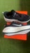 Nike Vomero Plus shoes in a vibrant orange box. Sleek design with black and gray accents.