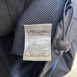 Nike Vtg Mens Sz XXL Gray & Blue Full Zip Windbreaker Jacket Gray Tag Logo. The body and lining are 100% polyester. It measures about 27 inches from armpit to armpit and the length from shoulder to hem is about 32.5 inches. In excellent condition.