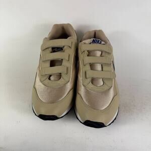The Nike W Outburst V Sneakers for women in size 9 feature a low top shoe shaft style in a beige color with a solid pattern. These athletic shoes are designed for activewear and casual occasions, perfect for activities like cycling, cross training, dance, and CrossFit. The sneakers have an adjustable strap for a customizable fit and are made with synthetic upper material. With a standard shoe width and a vintage release year of 2018, these Nike sneakers offer both style and functionality for various seasons including winter, summer, fall, and spring..