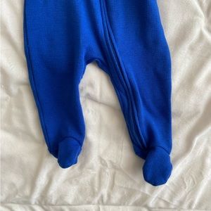 This super chic zip front footed one piece is perfect for a Golden State Warrior fan or just a cute baby in general. The waffle knit thermal like texture provides comfort and some warmth on a cool day