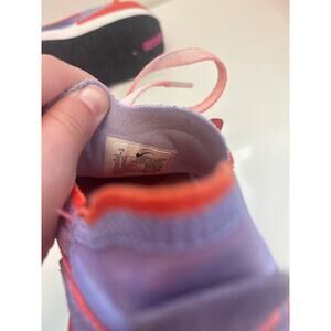 The Nike Waffle One Sneaker in TEAM ORANGE /HYPER CRIMSON DC2533-800, Women's Sz 7 US, is a stylish and comfortable pair of athletic shoes designed for women. With a lace-up closure and low-top shoe shaft style, these sneakers are perfect for activewear or casual occasions during the summer, fall, and spring seasons. Made with a blended fabric upper material, breathable lining, cushioned insole, and rubber outsole, these sneakers offer both style and performance for walking or running activities. The vibrant orange and purple color scheme with geometric patterns and Nike logo accents give these sneakers a trendy and sporty look, ideal for the 70s and 80s themed fashion enthusiasts.