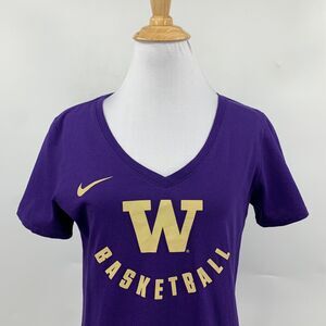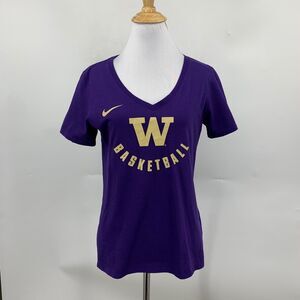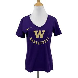 NIKE WASHINGTON HUSKIES T SHIRT WOMENS S SMALL PURPLE BASKETBALL DRI FIT V NECK