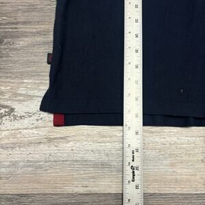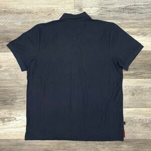 In excellent pre-owned condition, navy blue with red trimming colorway collared short-sleeve pullover button-front athleisure sporty sports athletic