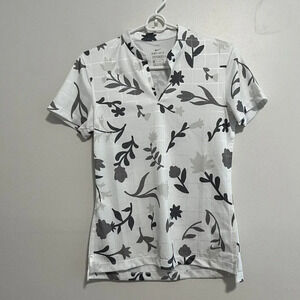 Nike White Floral Notched Neck Short‎ Sleeve Golf Shirt Size XS