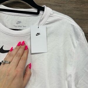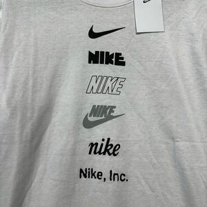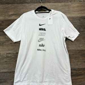 Classic white Nike shirt. Features multiple logo designs. Comfortable and stylish.
