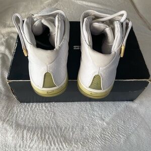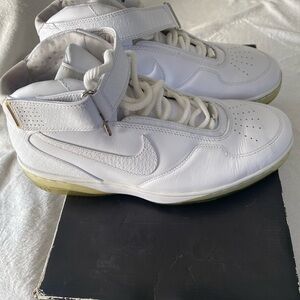 Crisp white high-tops with a sleek leather finish. Features adjustable strap for secure fit.