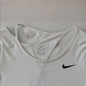 Sleek white Nike tee with black swoosh. Ideal for active wear.
