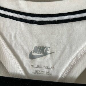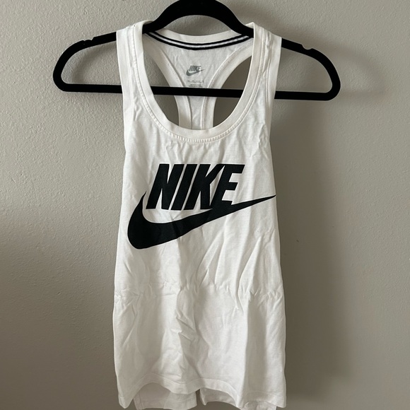 Sleek white Nike tank with racerback design. Features iconic logo.