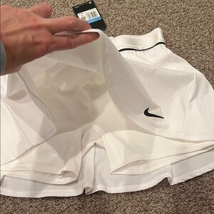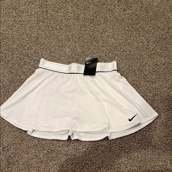 Chic white skirt featuring a sleek black Nike logo. Ideal for active and casual wear. Never worn, tags attached