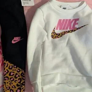 Nike White Sweatshirt & Black Leggings Set with Pink Leopard Swoosh