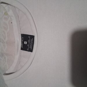 Classic white Nike top. Features iconic logo on sleeve. Comfortable and stylish.