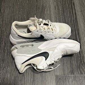 Step into style and comfort with these Nike sneakers, showcasing a sleek white and black design. Perfect for everyday wear, they feature a classic lace-up closure and a durable leather upper. The sporty look is enhanced by a sturdy sole with subtle black detailing, making them ideal for casual outings or light athletic activities.