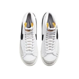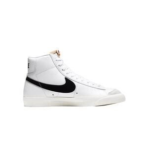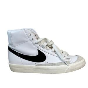 Stylish high-top sneakers. Classic white with black swoosh. Comfortable and trendy.