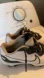 These Nike sneakers feature a sleek white and black design, perfect for your athletic child. With a durable leather and synthetic upper, they provide comfort and style. The iconic black swoosh adds a classic touch to these versatile cleats. Size 1y!