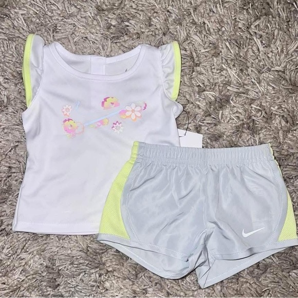 Nike White and Gray Kids Set with Floral Accents