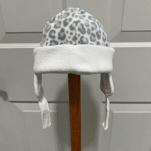 Nike White and Gray Leopard Print Fleece Hat with Ear Flaps