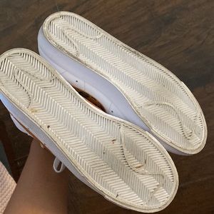 Stylish high-top sneakers. White base with leopard print accents. Iconic Nike swoosh design.