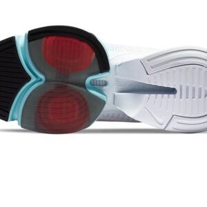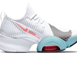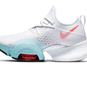 Nike sneakers in white with light blue and red accents. Modern design with a comfortable fit.