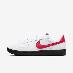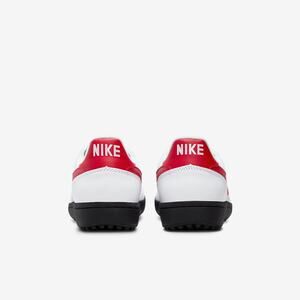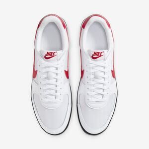 Stylish Nike athletic shoes. White upper with red accents. Durable black sole. Perfect for sports and casual wear.